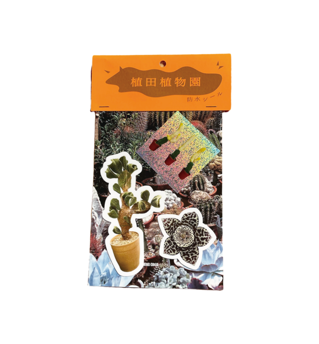 植田植物園オリジナルステッカーセットが完成! 防水仕様なのでどこにでもお好きに貼って楽しめます。 そして金券おみくじ(0円〜500円の割引券)が入っており植田植物園POP UPで全商品にお使い頂けます。 ※パッケージは手作業で行っている為個体差がありますがご了承ください。